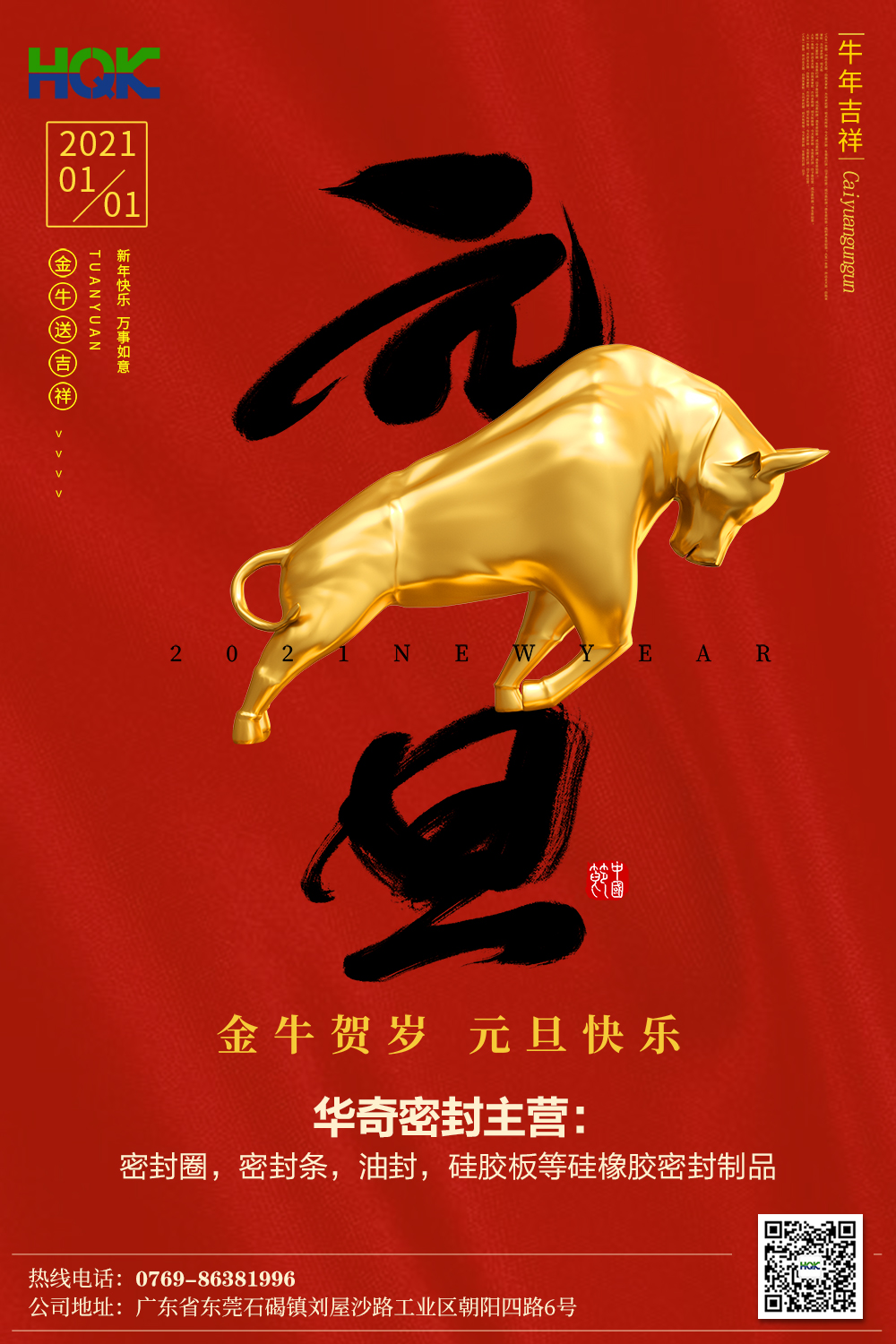 告別2020,迎接2021,東莞市華奇密封件有限公司新的一年祝大家牛年大吉,平安喜樂,優(yōu)質(zhì)硅膠板按客戶需求定制不同性能、任意尺寸的硅膠板。歡迎來電咨詢!硅膠板熱線:胡海波:136 3175 4988,唐龍:139 2949 6886。